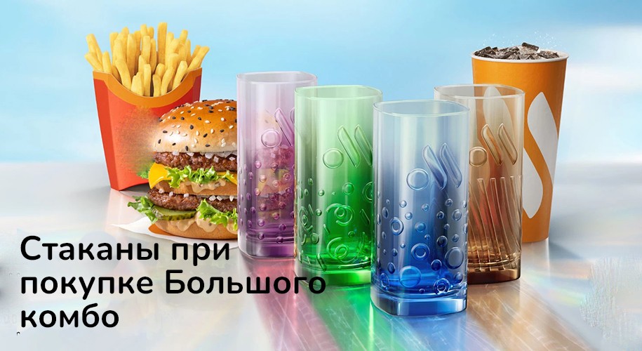 Ура, фирменные стаканы вернулись в ресторан Вкусно и точка! В период с 12 июля по 31 августа 2025 года во Вкусно и точка можно купить один из трех стеклянных стаканов по специальной цене — 10 рублей. Чтобы получить один из стаканов достаточно купить: