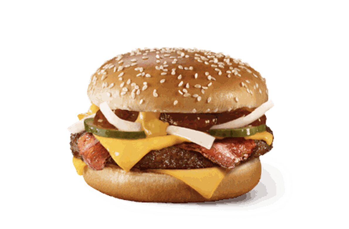 Гранд Пряный микс — это сочный бифштекс из натуральной говядины, приготовленный на гриле, карамелизованная булочка с кунжутом, два ломтика сыра Чеддер, свежий лук, маринованные огурчики, горчица, хрустящий бекон и уникальный соус с восточными специями, придающими пикантный вкус.