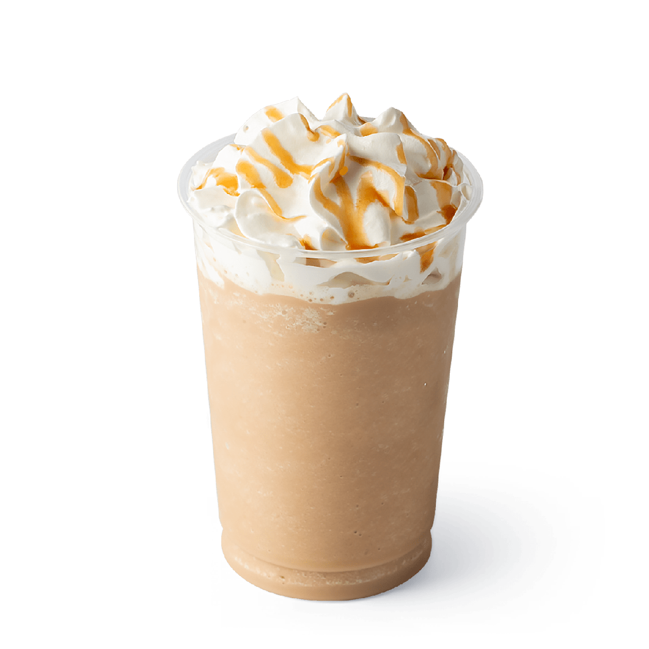 Фраппе Карамельный — это лёгкий освежающий напиток с нежным вкусом карамели, украшенный взбитыми сливками и соусом из карамели. Фраппе Карамельный подается в 2 вариантах: средний / большой.