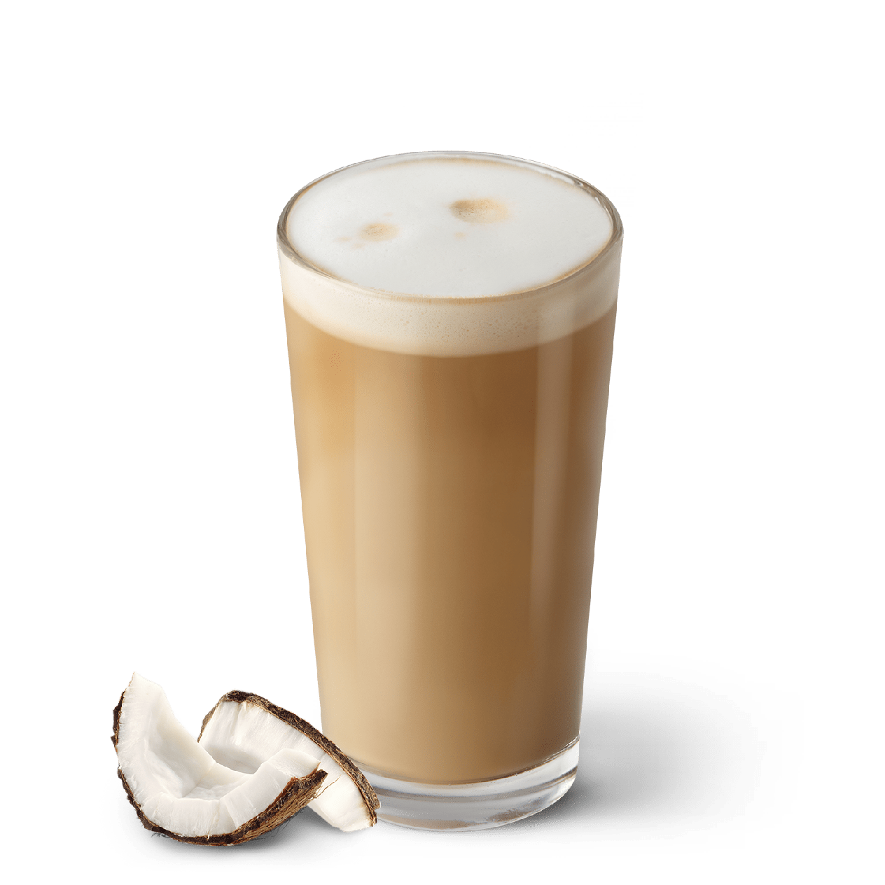 Кокосовый Флэт Уайт — это выбирайте напитки Кафе теперь и на кокосовой основе! Кокосовый Флэт Уайт подается в 2 вариантах: средний / большой.