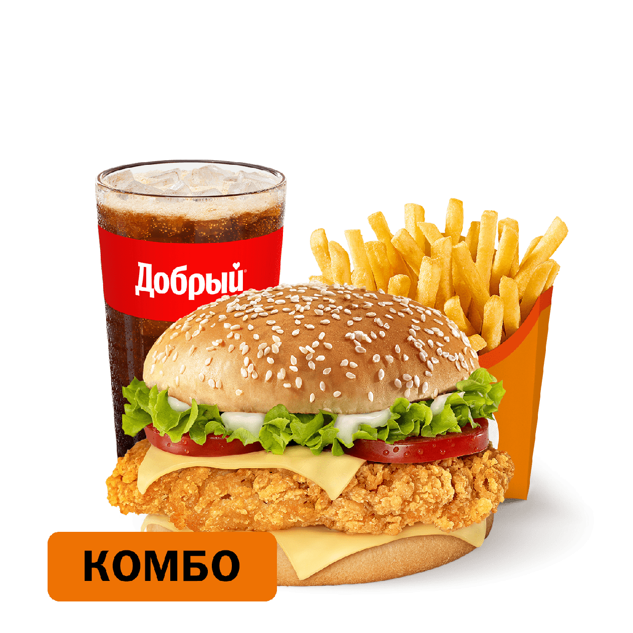 Биг Чикен Бургер Комбо — это комбо состоит из Биг Чикен Бургера, Картофеля на выбор и Напитка на выбор. Цена Комбо может меняться в зависимости от комплектации. Биг Чикен Бургер Комбо подается в 2 вариантах: стандартный / большой.