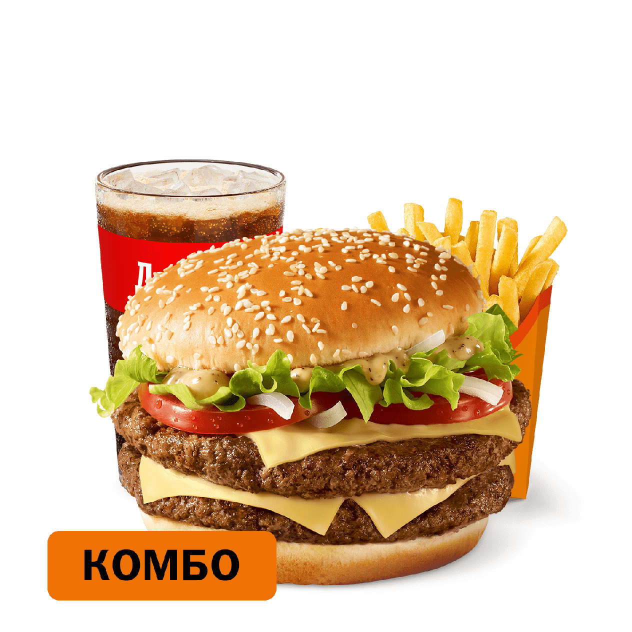 Двойной Биг Спешиал Комбо — это комбо состоит из Двойного Биг Спешиал, Картофеля на выбор и Напитка на выбор. Цена Комбо может меняться в зависимости от комплектации. Двойной Биг Спешиал Комбо подается в 2 вариантах: стандартный / большой.