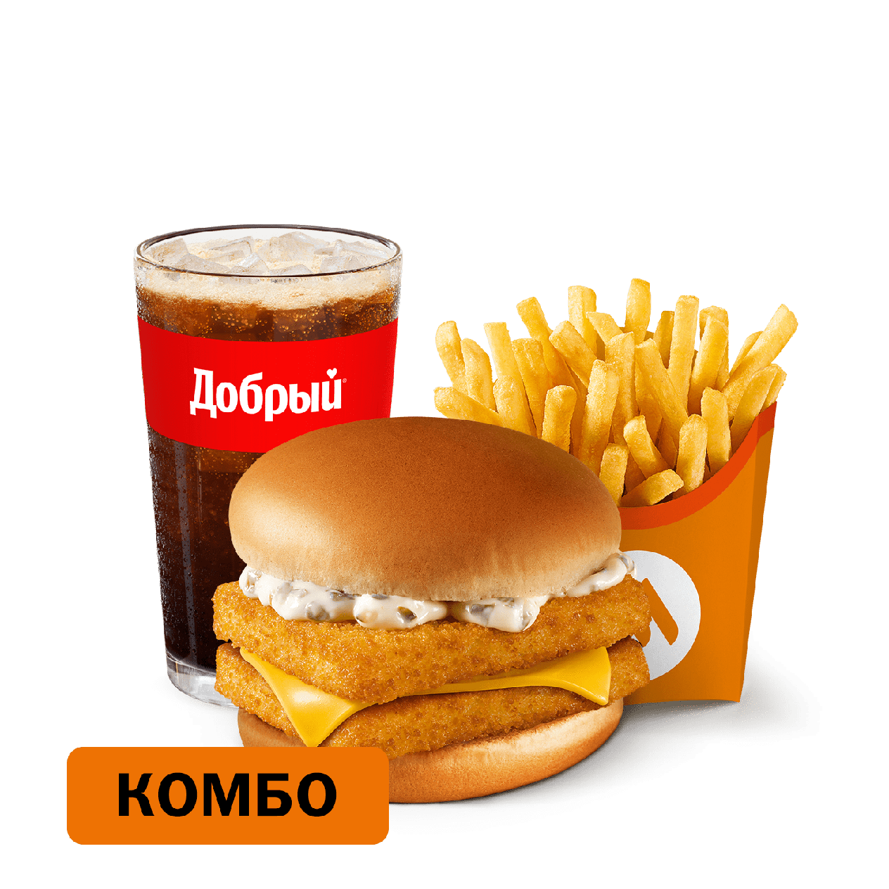 Двойной Фиш Бургер Комбо — это комбо состоит из Двойного Фиш Бургера, Картофеля на выбор и Напитка на выбор. Цена Комбо может меняться в зависимости от комплектации. Двойной Фиш Бургер Комбо подается в 2 вариантах: стандартный / большой.