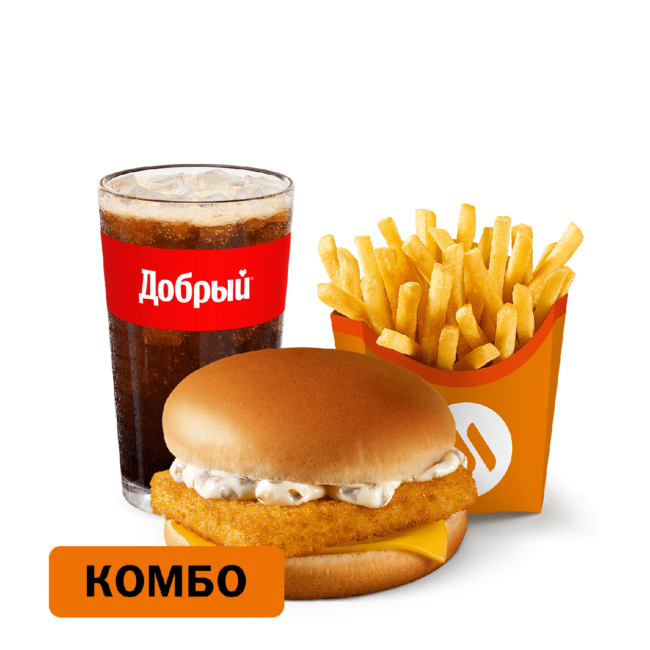 Фиш Бургер Комбо — это комбо состоит из Фиш Бургера, Картофеля на выбор и Напитка на выбор. Цена Комбо может меняться в зависимости от комплектации. Фиш Бургер Комбо подается в 2 вариантах: стандартный / большой.